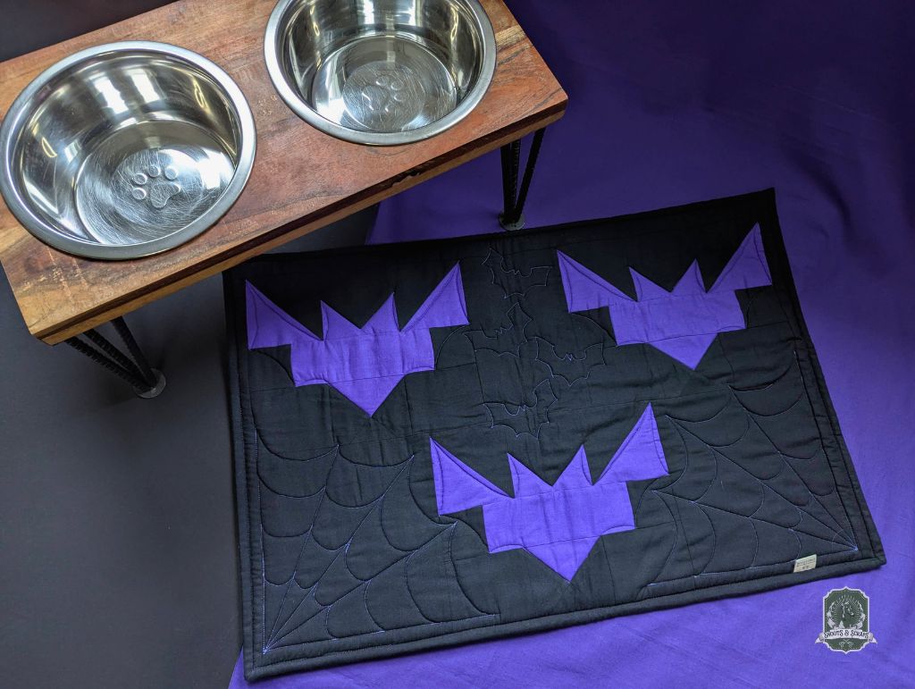 Orange & Black Rectangle Checkerboard | Pet Bowl Quilted Placemats