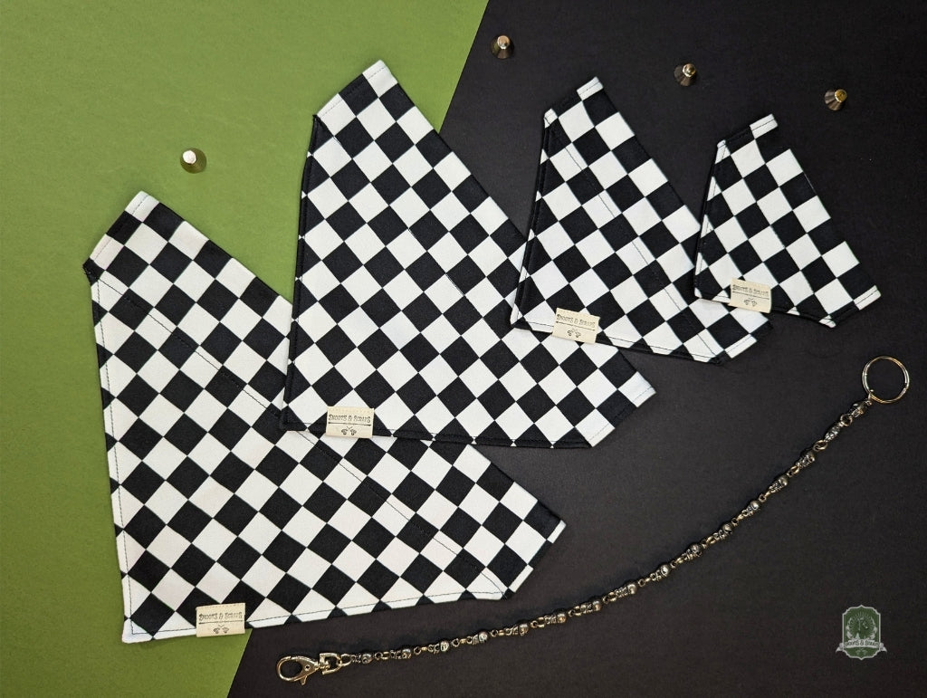 Our Slide On Collar Bandanas are all handmade from pre-existing textiles and are available for dogs, cats or all other pets that wear a collar!