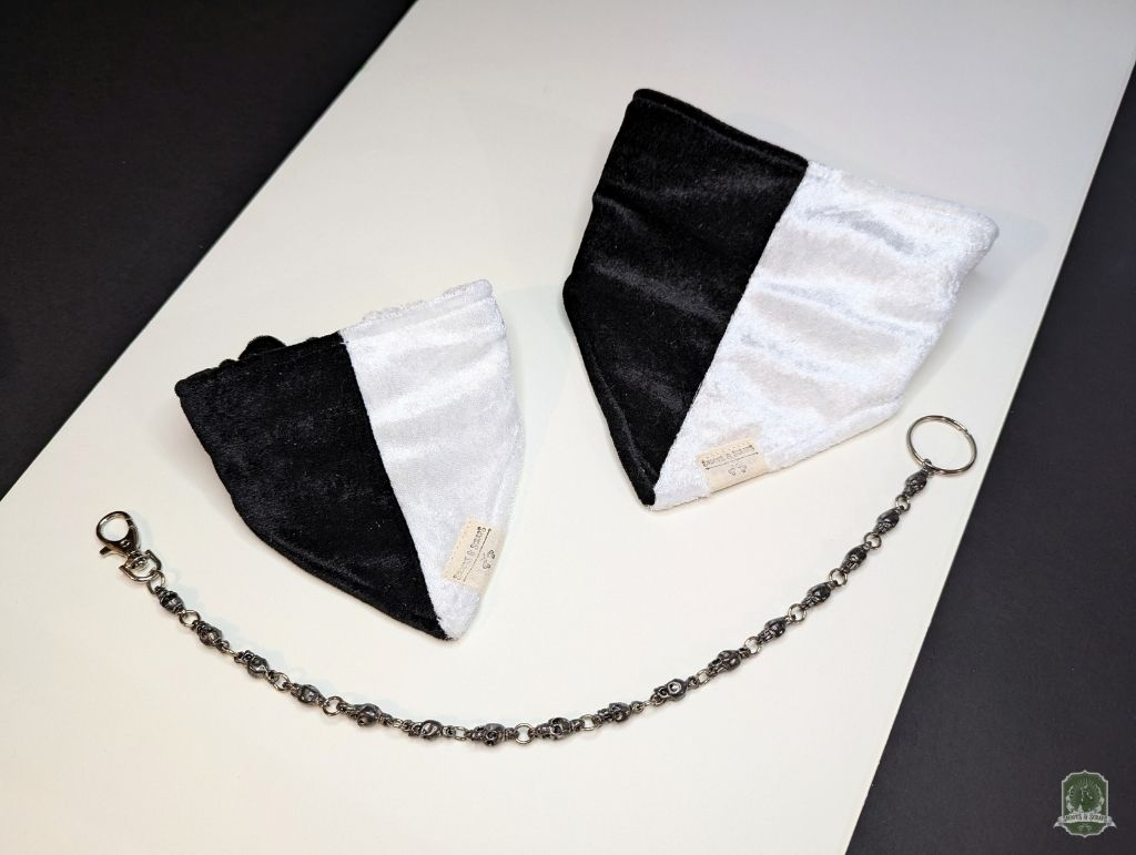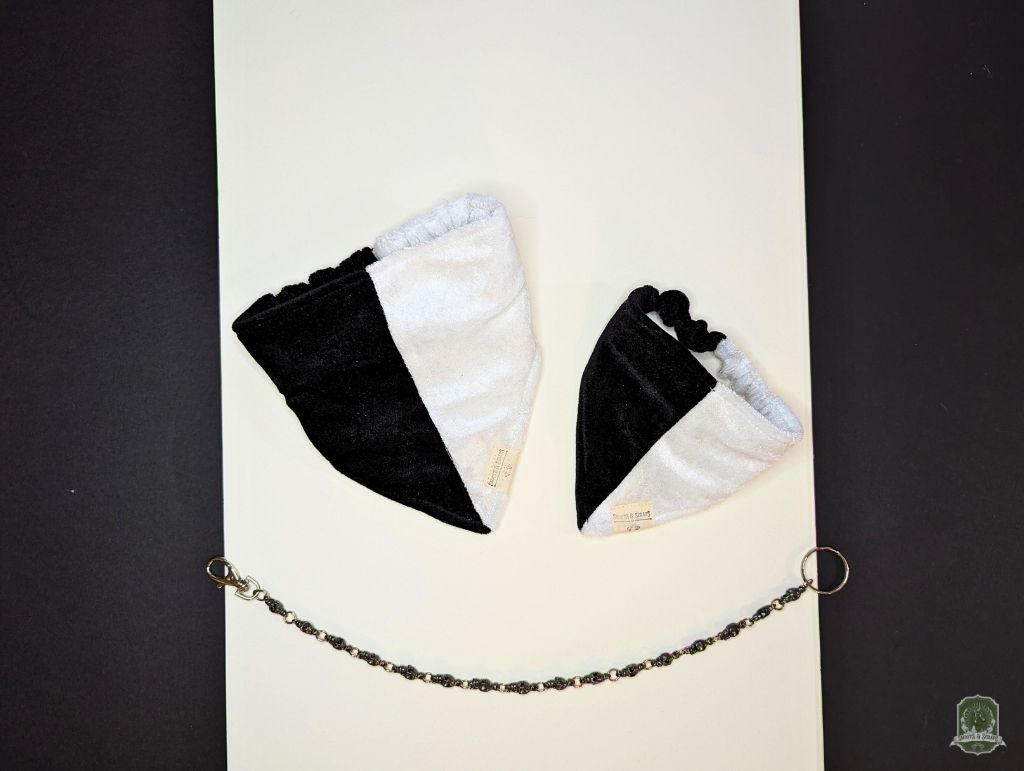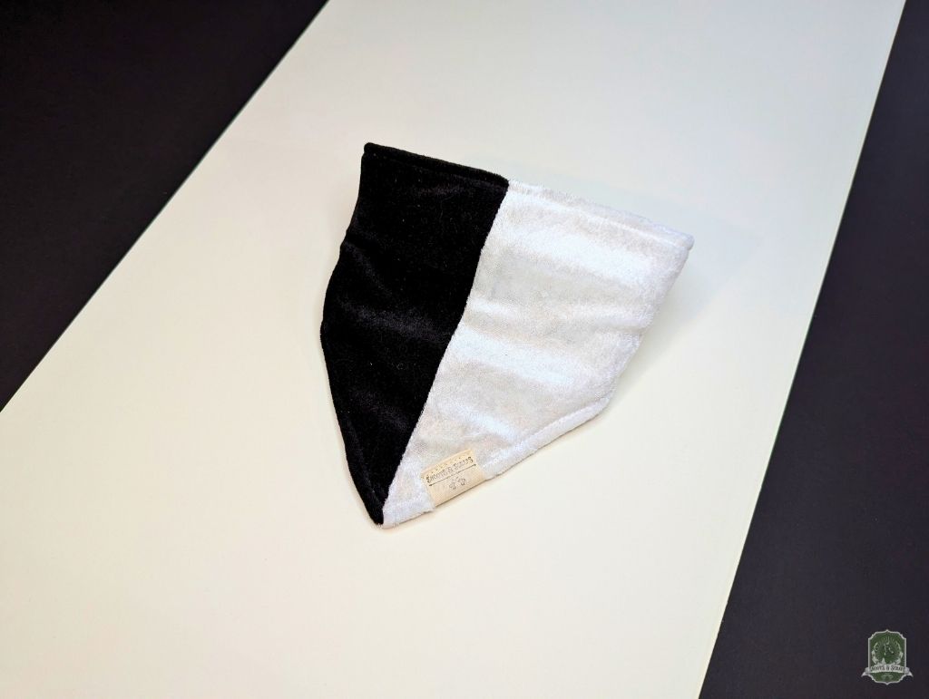 Half & Half Black and White Velvet | Elastic Dog Bandana
