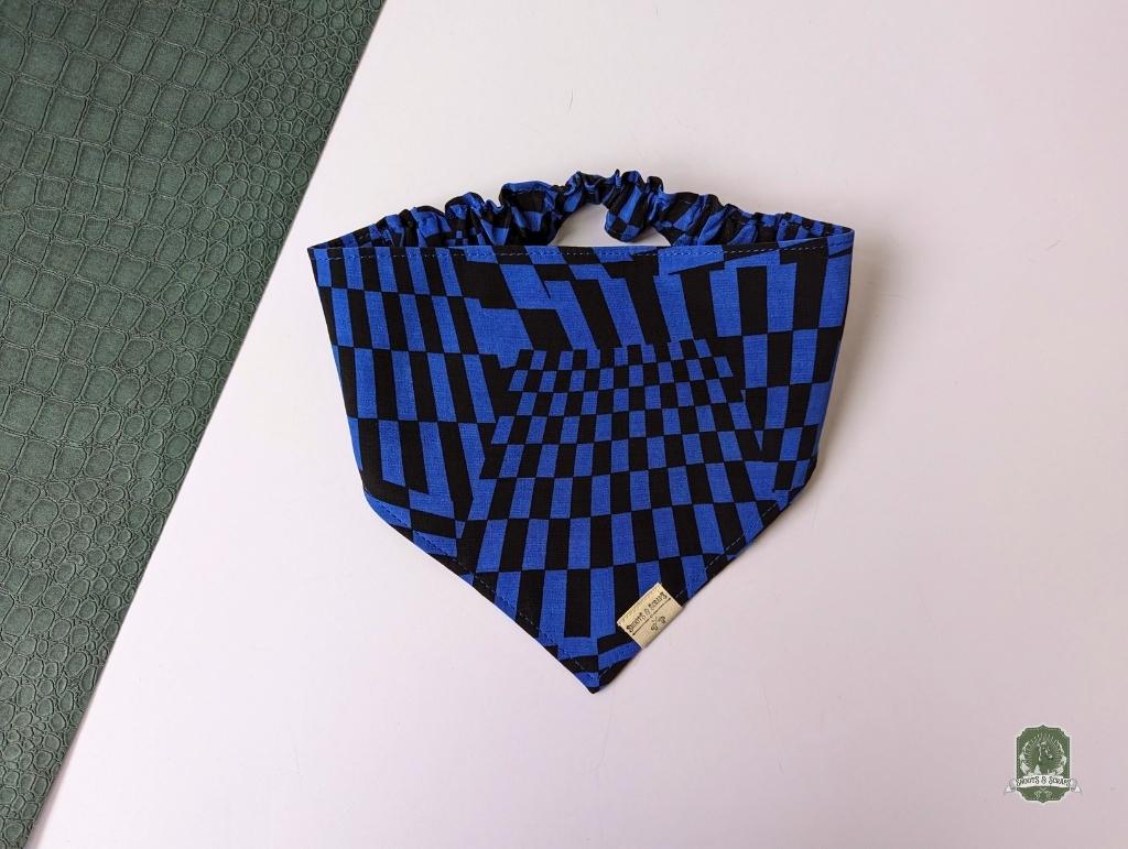 Blue & Black Funky Checkered | Elastic Dog Bandana