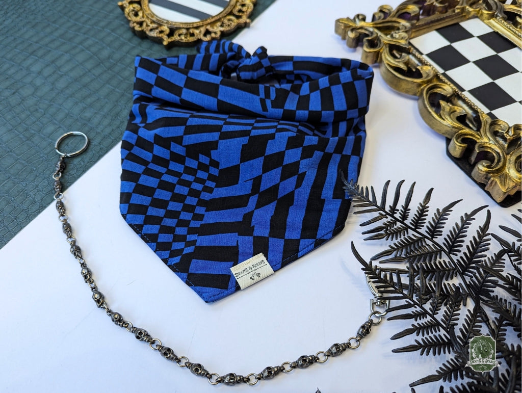 This blue & black funky checkerboard bandana is made from deadstock fabric!