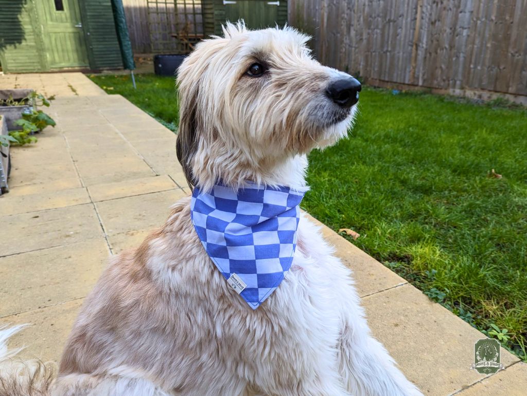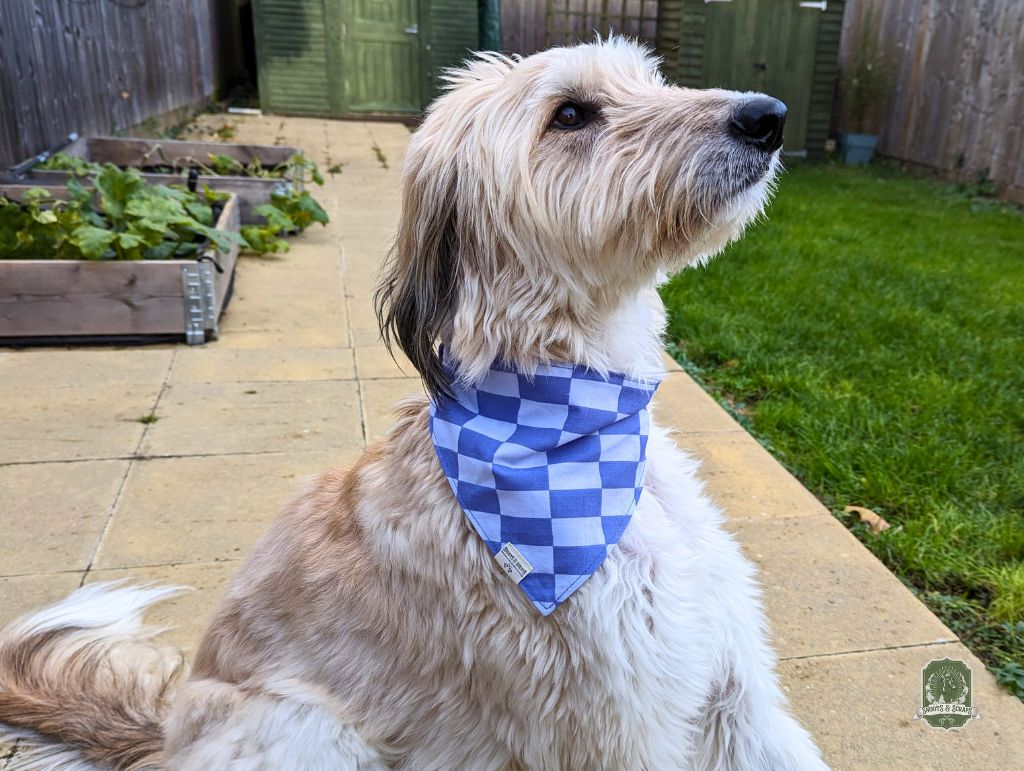 Our Elasticated Dog Bandanas are all handmade from pre-existing textiles and are available for dogs of all breeds and all sizes!