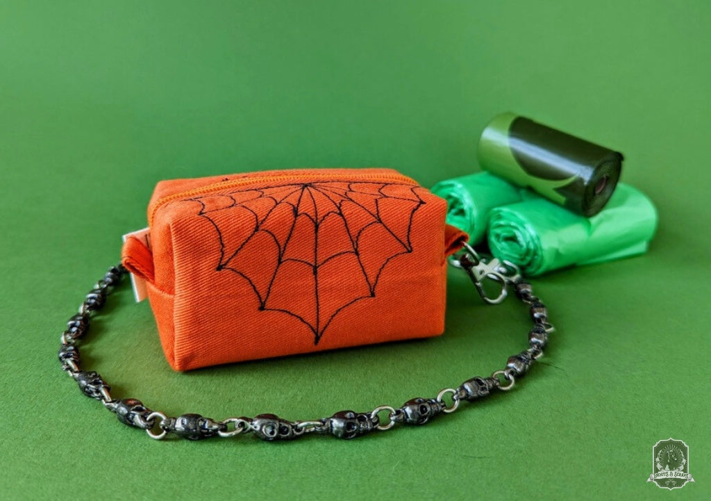 Deluxe | Poo Bag Holder | Orange with Black Spiderwebs