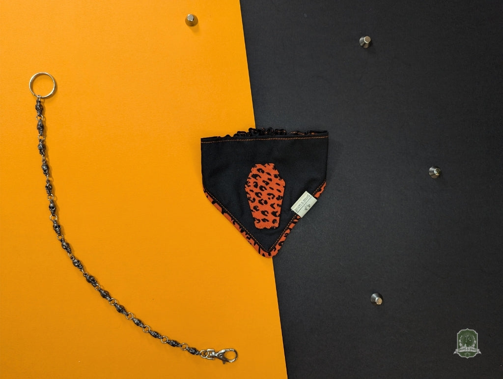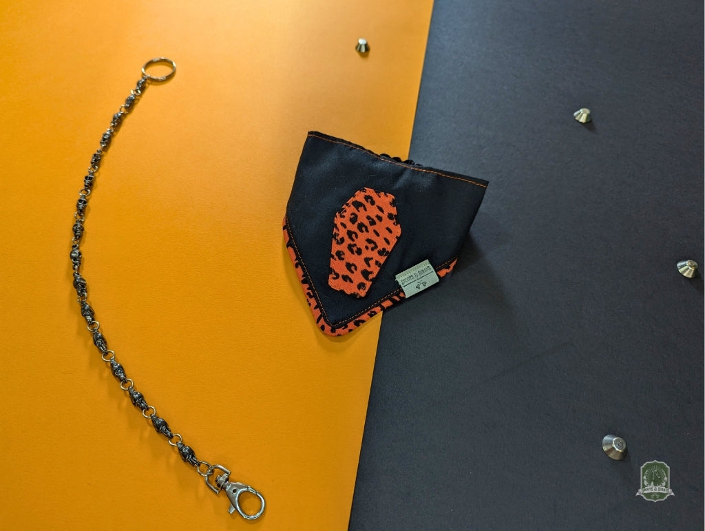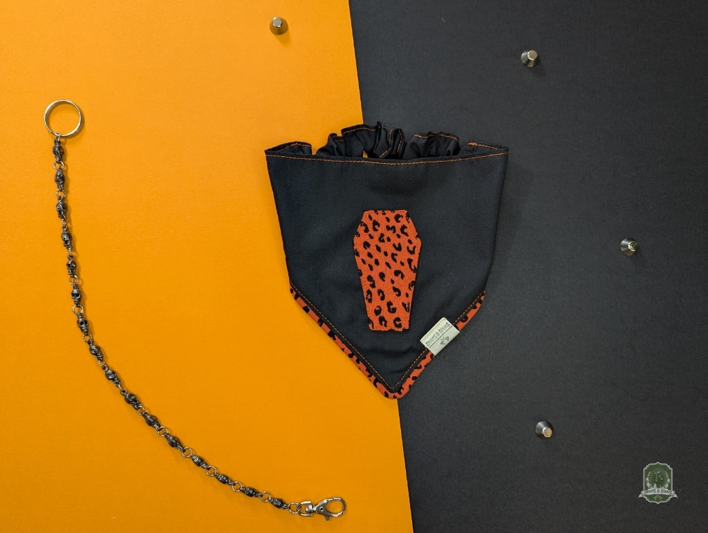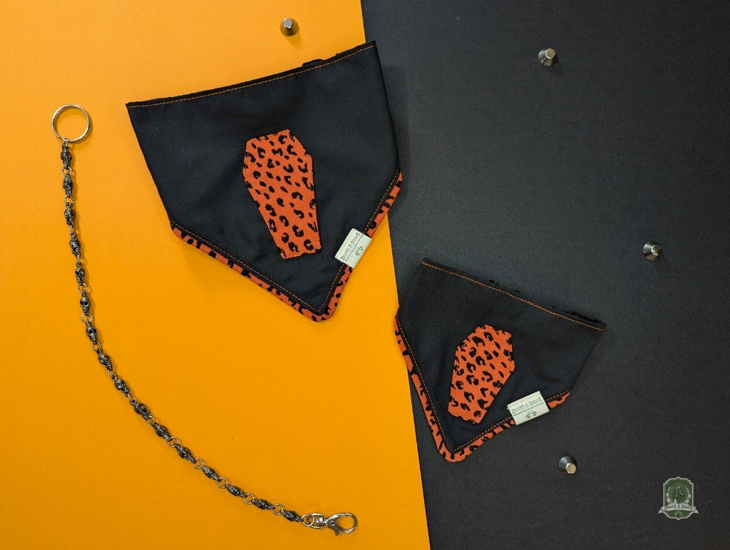 Black & Orange Leopard Coffin | Elastic Dog Bandana