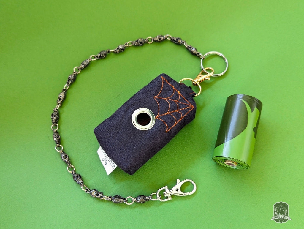 Mini | Poo Bag Holder | Black with Orange Spiderwebs