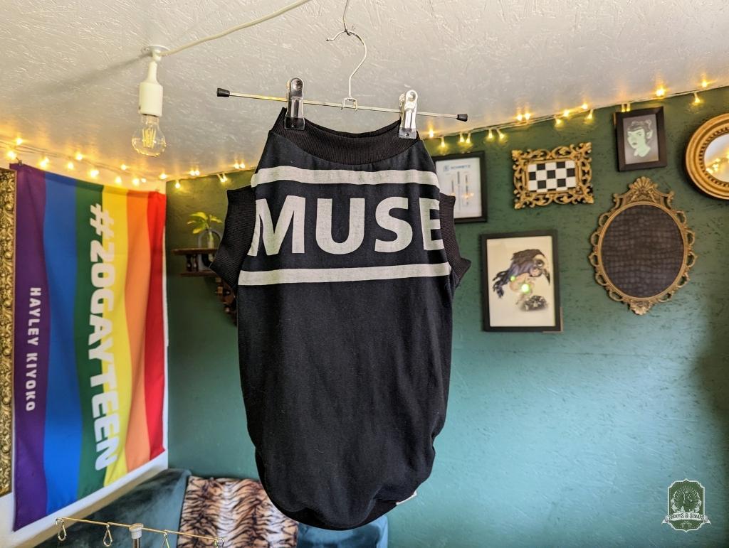 Time is running out! Grab this Muse Dog Band Tee and show your dog's love for alternative rock! This previously unwanted human T-shirt has been reworked into a one of a kind Dog Band Tee.