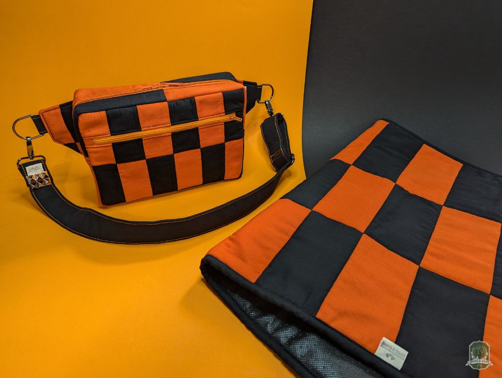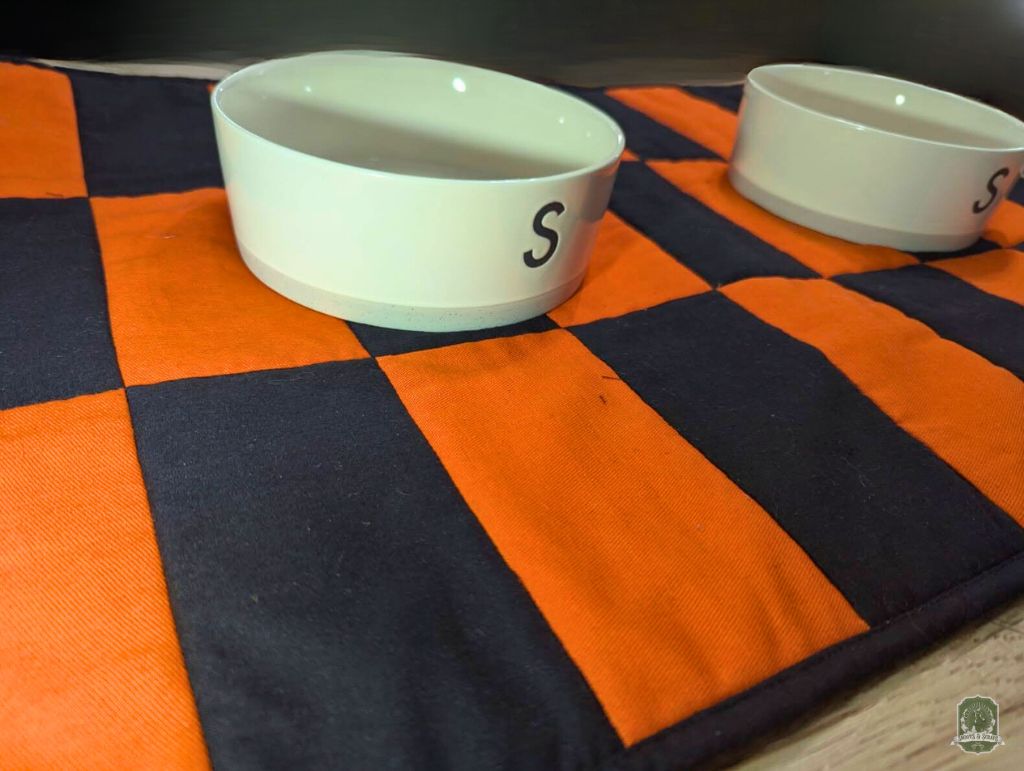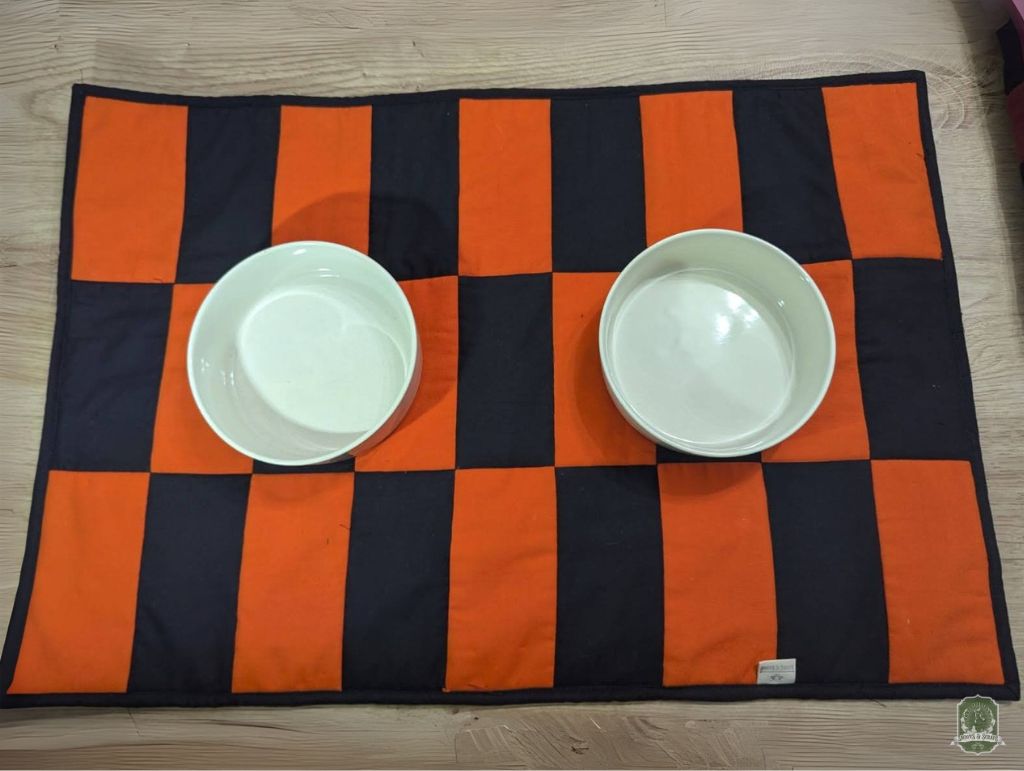 Orange & Black Rectangle Checkerboard | Pet Bowl Quilted Placemats