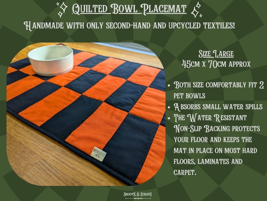 They are useful, stylish and are handmade with pre-existing and recycled fabrics: meet our Quilted Pet Bowl Placemats!