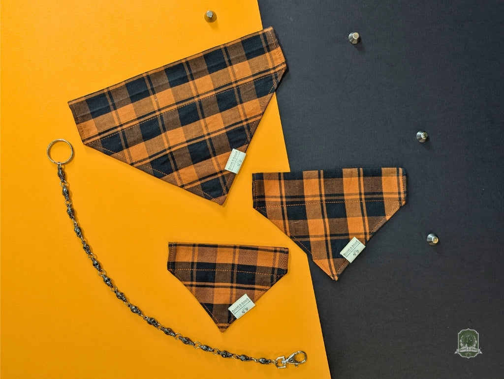 Orange Tartan Check | Slide On Collar Bandana