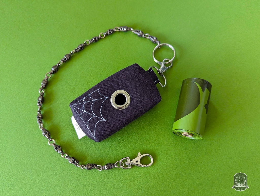 Mini | Poo Bag Holder | Black with White Spiderwebs