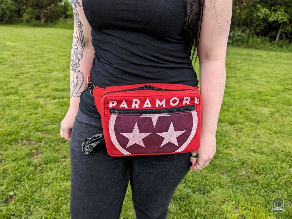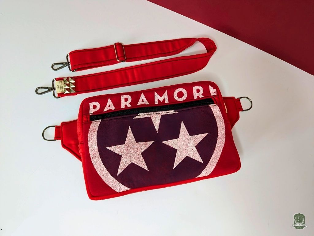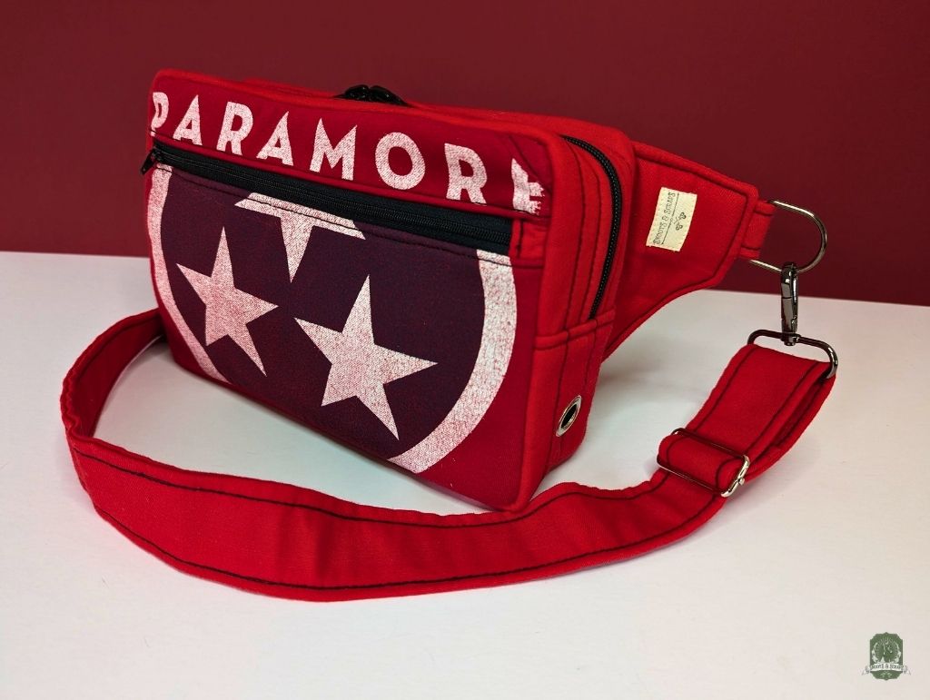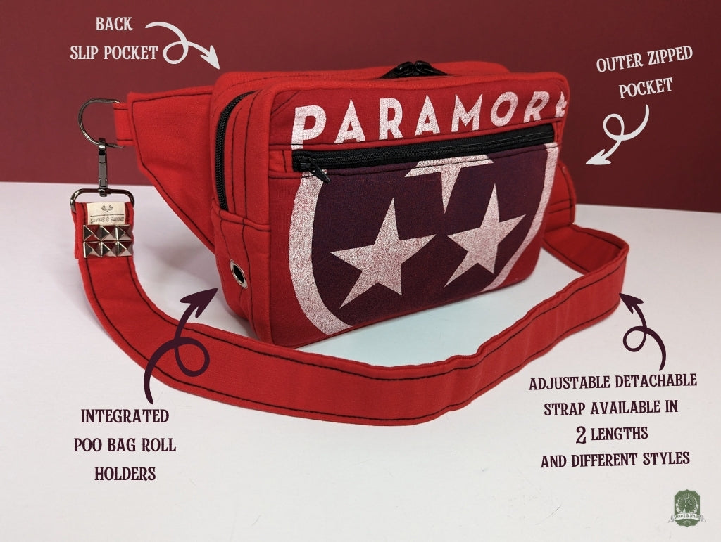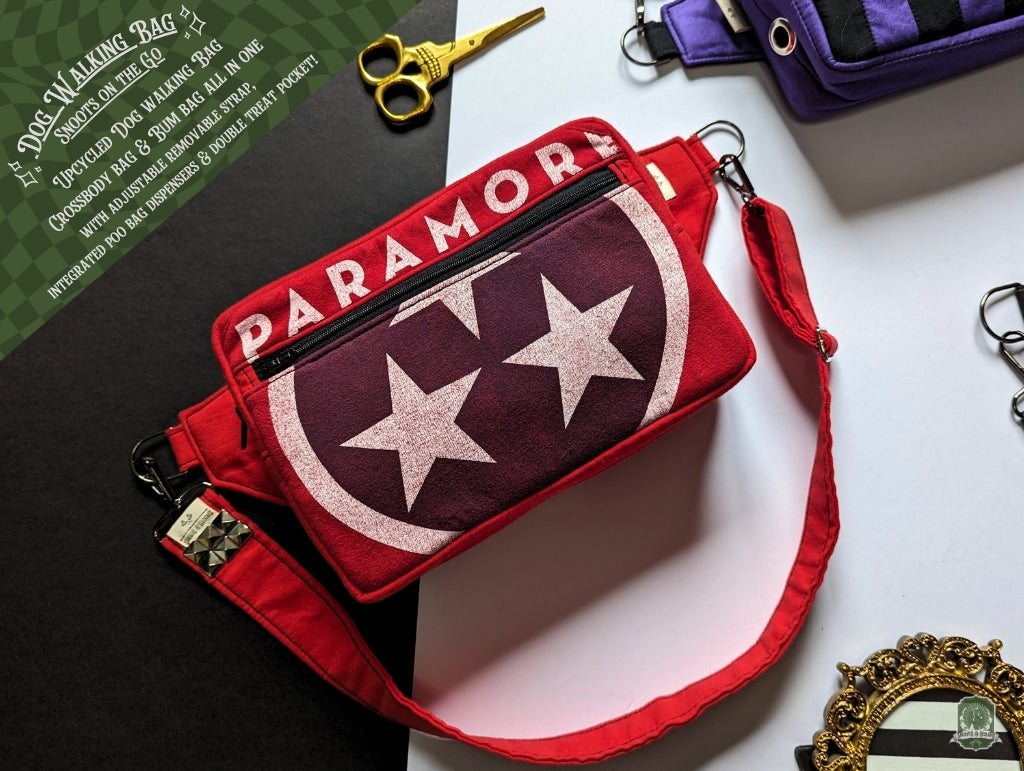 Snoots On The Go | Upcycled Dog Walking Bag | Paramore Red Band Tee